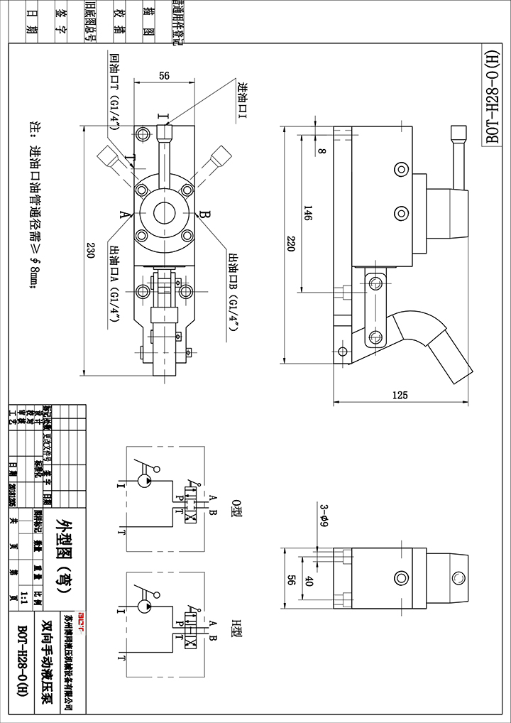 *進油口必須采用通徑大于或等于8mm的油管,否則會導致吸油不夠而失壓*